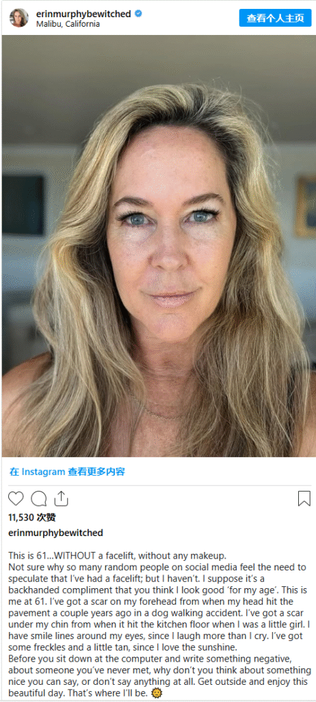 The ex-Bewitched star—who portrayed the daughter of Elizabeth Montgomery and Dick York/Dick Sargent’s characters—took to Instagram to shut down buzz that she’d had a facelift. “This is 61… NO facelift, no makeup at all,” she wrote, addressing the speculation swirling among fans and followers.