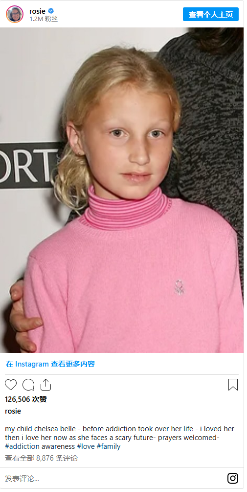 Rosie O’Donnell is opening up about her daughter Chelsea’s prison sentence, sharing a heartfelt message of support as the 28-year-old faces consequences for violating her probation in a drug-related case. The former talk show host took to Instagram this week to speak out, pairing her post with a photo of Chelsea from before addiction took hold.