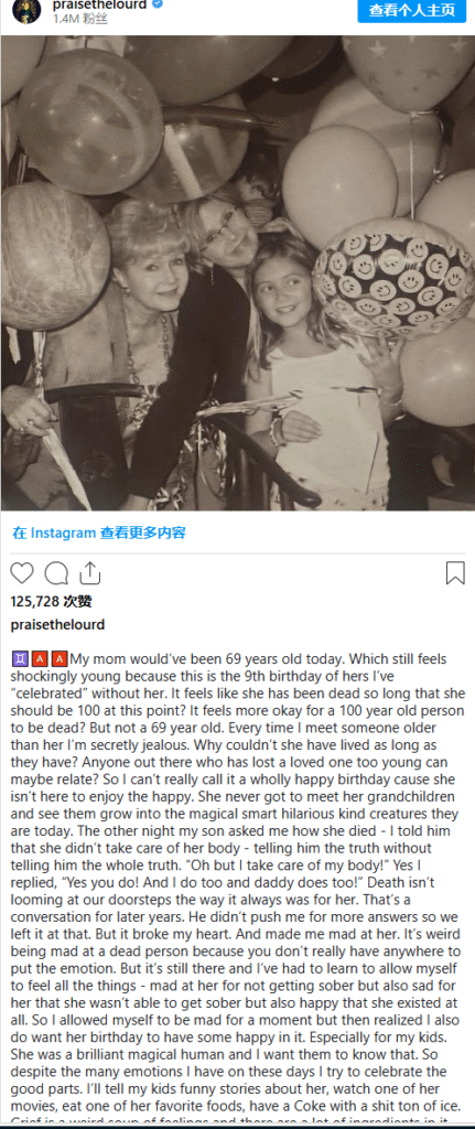 Lourd even joked that she hit Instagram’s character limit (“because I talk too much?”), so she finished her post in the comments section: “And for that, I’m grateful—or ‘griefull,’ if you want to make up a word. Sending my love to anyone out there who’s had to eat this multifaceted soup that is grief. It’s not always tasty, but it might make you a stronger, healthier person. Happy birthday, Momby. I miss you and love you more than you could ever know. ”