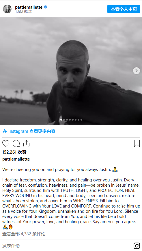 Following an Instagram post from his mother Pattie Mallette—where she vowed to “pray for you always” and called for healing—Justin Bieber has responded, using the comments section to reveal exactly what the “only thing I need healing from” really is.
